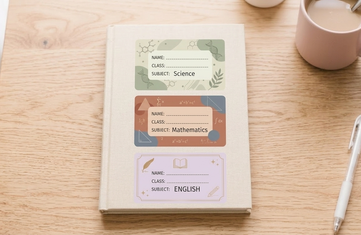 School notebook stickers are custom labels or decorative designs used to personalize notebooks. They usually include details like name, class, subject, and creative graphics to make notebooks look unique and organized.